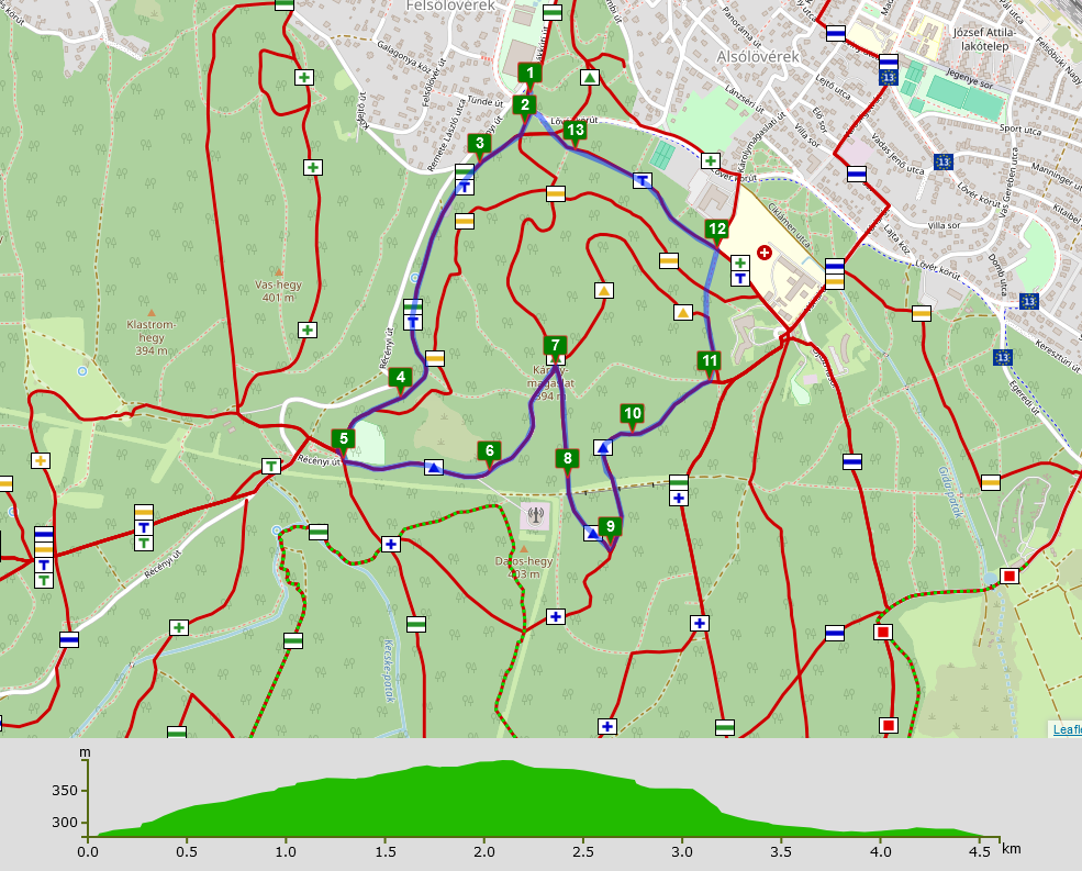 Útvonal: Lővér uszoda - Deák-kút - Kalandpark - TV torony - Károly-kilátó (itt pihenő és játszási lehetőség a gyerekeknek) - Sípálya - Dalos-kő - Muck emlékmű - Lővér uszoda