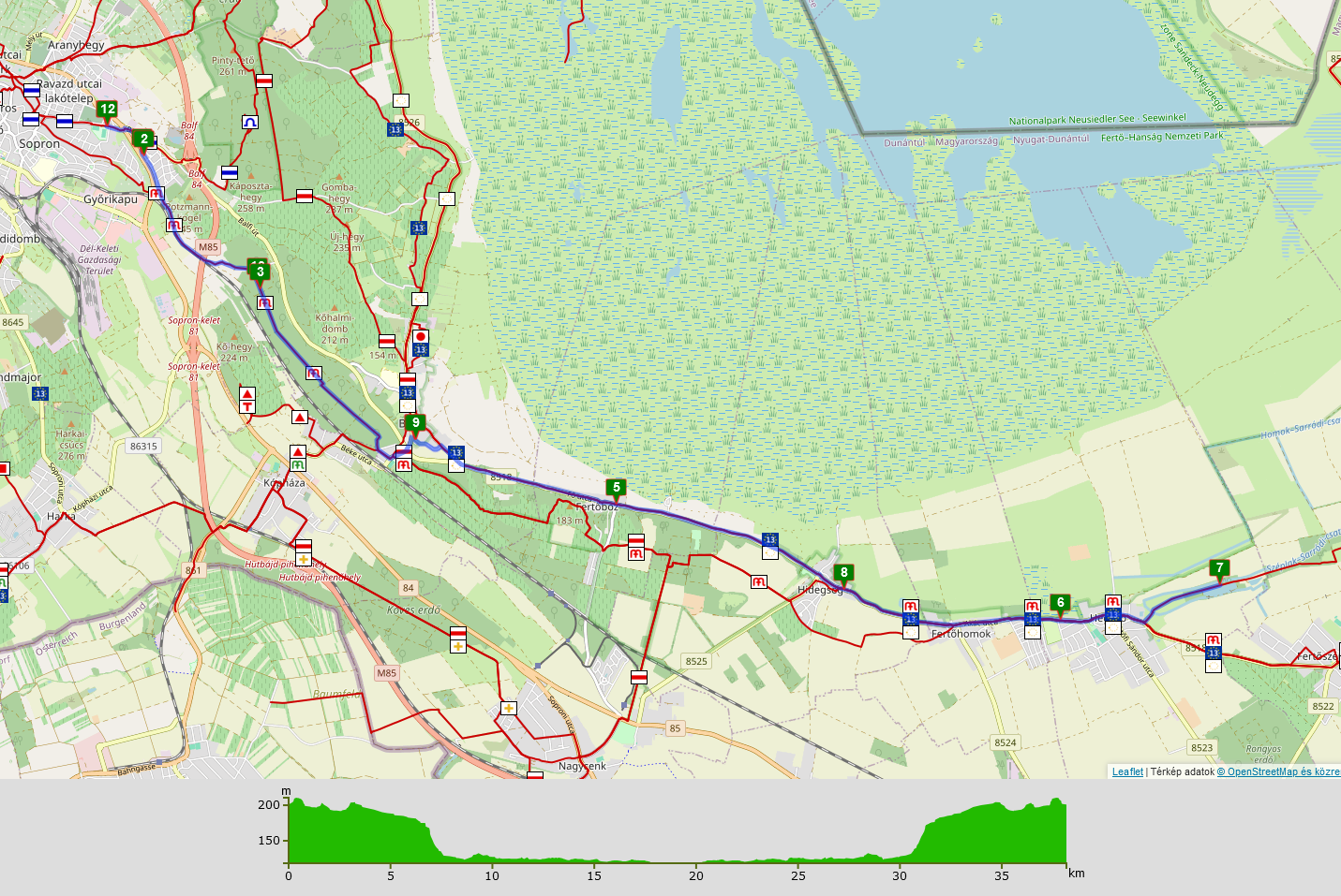 A túrán 20 kilométernél megfordulunk és ugyanazt az útvonalat járjuk be visszafelé. Az előző évek tapasztalatai alapján ez a szakasz már egyéni tempóban is teljesíthető. Kijelölés nem lesz, de a Sopron-Balf közötti erdei szakasz kijejölt túristaút (Mária-út része).